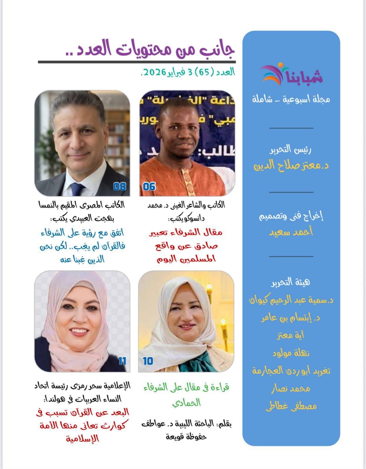 - ملفات هامة علي صفحات مجلة "شبابنا" .. تضيء الطريق وتدعو المسلمين للعودة إلى مرجعيتهم القرآنية