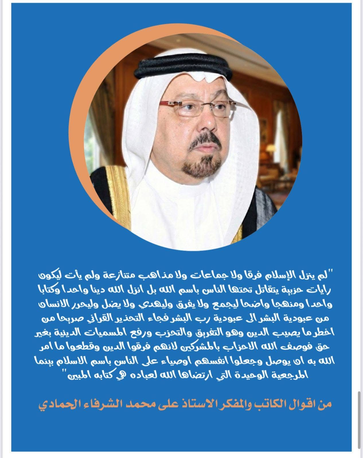 - رسائل علي الشرفاء الحمادي تصنع جسر من النور بين الوحي ورسائل العصر .. كلام الله المرجعية الوحيده