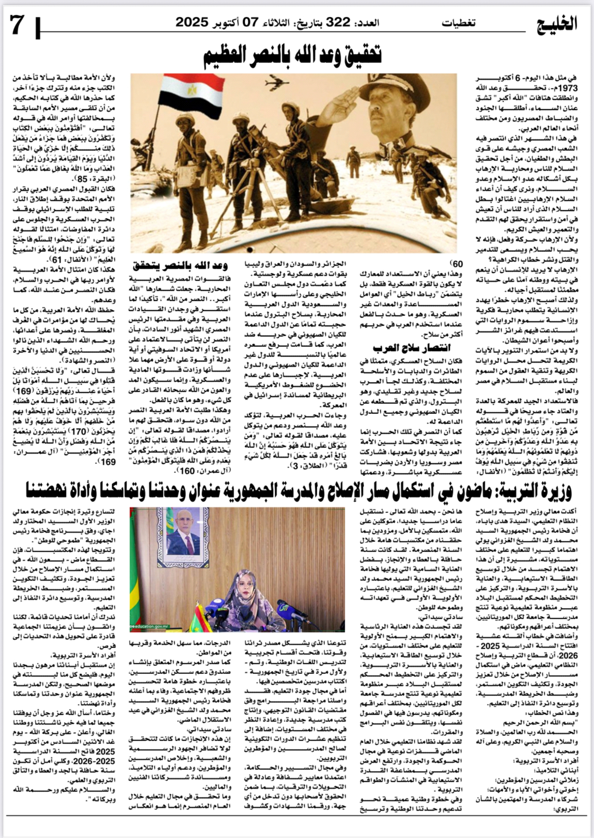 وفي الملف التربوي، نقلت المجلة تصريحات وزيرة التربية الوطنية التي أكدت استمرار الدولة في مسار الإصلاح التربوي، معتبرة أن المدرسة الجمهورية تمثل " عنوان للوحدة الوطنية، وأداة للنهوض الحضاري " .