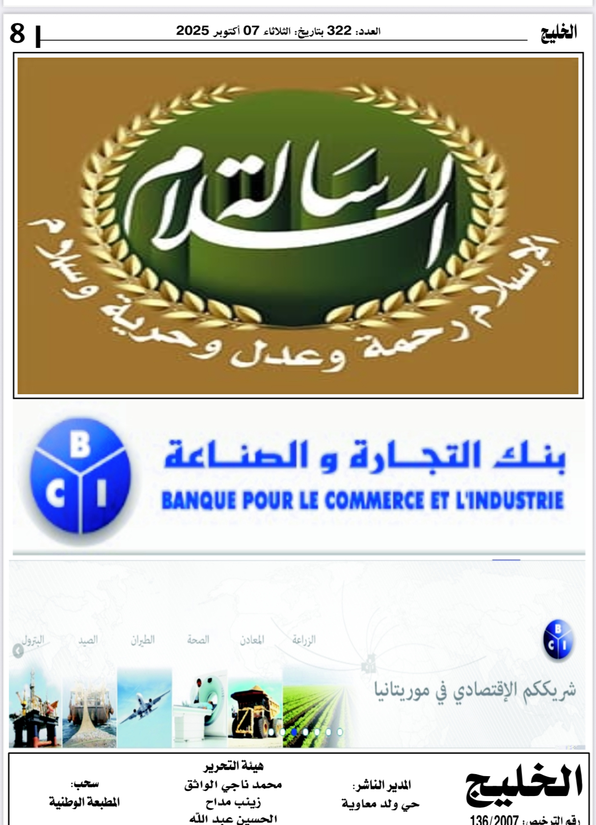 صدر العدد الجديد من مجلة " الخليج " الصادرة عن مؤسسة الموريتاني للنشر والتوزيع، حافلاً بمحتوى متنوع يجمع بين الفكر الديني المستنير، والتحليلات السياسية، والتقارير الثقافية، إلى جانب مستجدات الساحة الصحية والتعليمية .