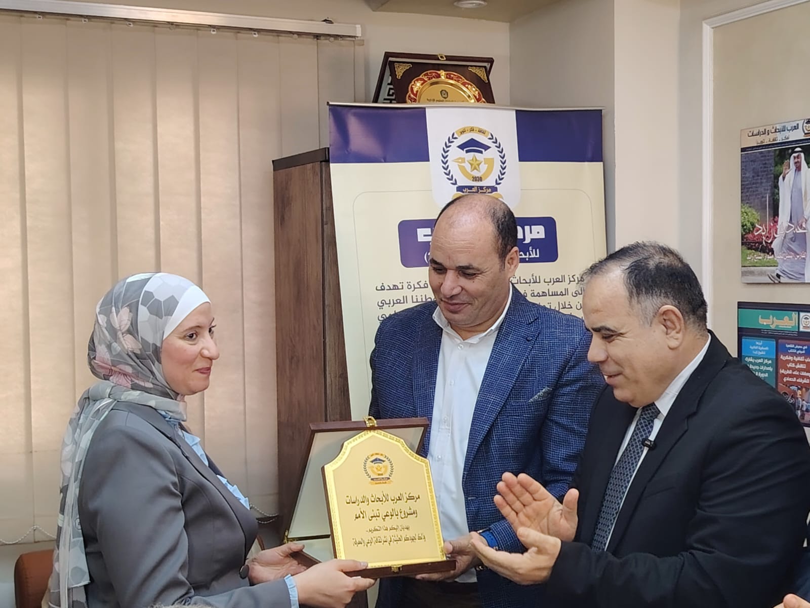 وكرم مركز "العرب" في نهاية الفعالية اللواء الغباري، والدكتورة نسرين مصطفى، والكاتب الصحفي مجدي طنطاوي،لإسهاماتهم المتميزة في التعريف بالقضايا الوطنية، وكونهم جزءًا من نشر الوعي والتنوير.