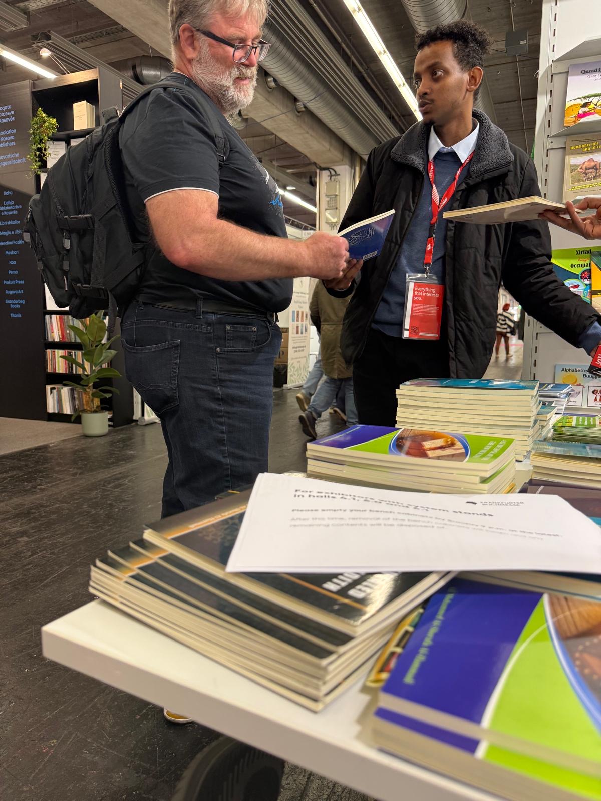 وخلال أيام المعرض، قام وفد مؤسسة رسالة السلام بإسبانيا، برئاسة الحاج محمد الأمين، الأمين العام للمؤسسة في إسبانيا، وبمشاركة ممثلي المؤسسة في ألمانيا، بتوزيع مجموعة من إصدارات المفكر العربي علي الشرفاء الحمادي، بلغات متعددة شملت : " الإسبانية، الفرنسية، الإنجليزية، الألمانية، الروسية، والسواحلية " وذلك بهدف إيصال الرسالة الإنسانية للإسلام الصحيح إلى أوسع شريحة ممكنة من القرّاء حول العالم .