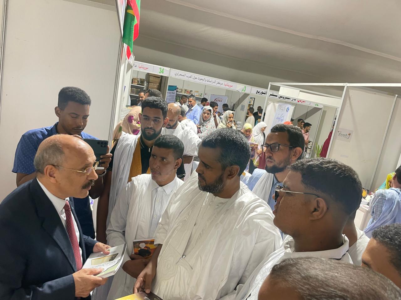 شهد جناح مؤسسة رسالة السلام بمعرض نواكشوط الدولي للكتاب زيارة رسمية لوفد طلاب مجلس العلوم الشرعية الشنقيطية التقليدية برئاسة الدكتور سيد أحمد سيدي الخليل “ أبو سهلة ” .
