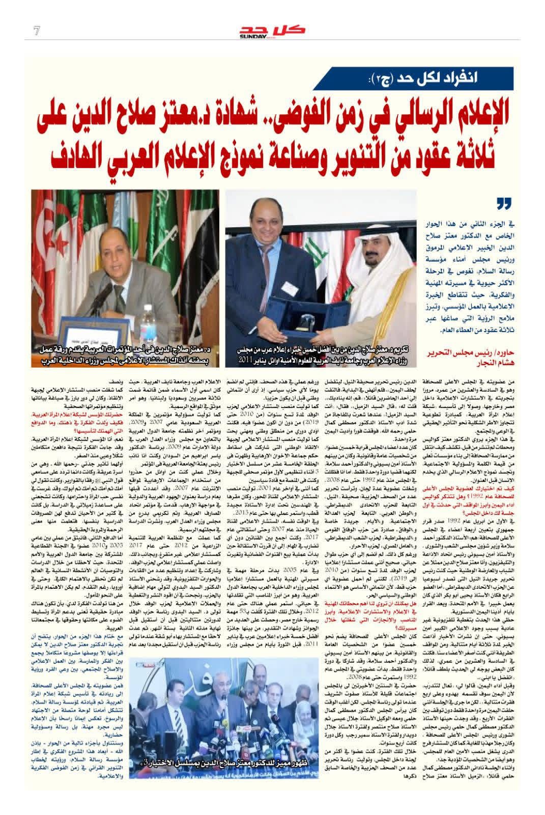 كما تضمّن العدد الجزء الثاني من الحوار الثري الذي أجراه رئيس مجلس التحرير مع الدكتور معتز صلاح الدين، رئيس مجلس أمناء مؤسسة رسالة السلام بالقاهرة، والذي تناول فيه رؤيته لمستقبل الخطاب الإعلامي ودوره في نشر ثقافة السلام والتنوير .