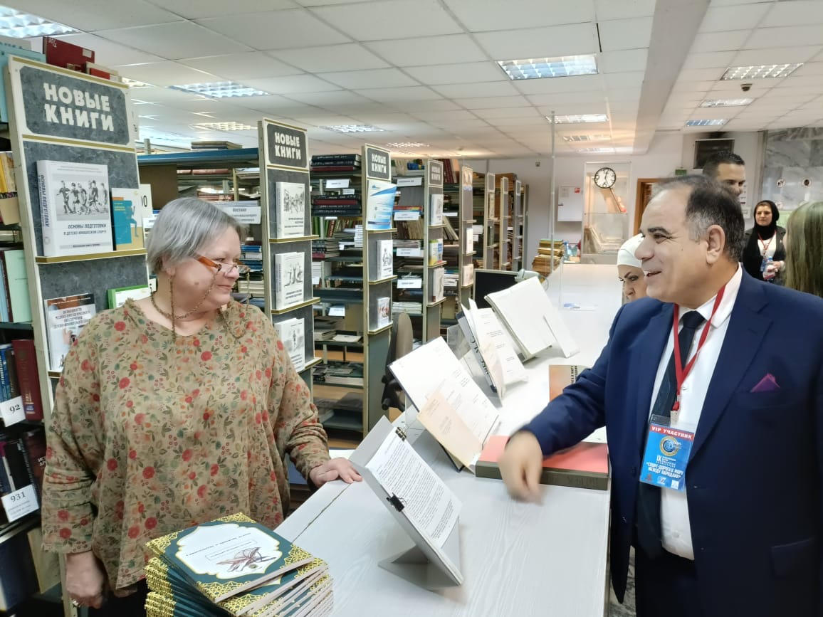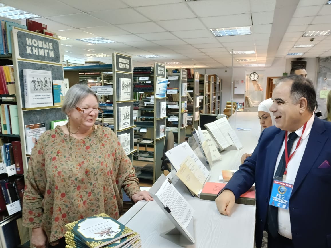 أهدى وفد مؤسسة رسالة السلام العالمية المكتبة الرئيسية لجامعة موسكو الاتحادية عدد من مؤلفات المفكر العربي الكبير علي محمد الشرفاء الحمادي، المترجمة إلى اللغة الروسية، منها كتاب شرعة الله ومنهاجه ووثيقة الدخول في الإسلام.