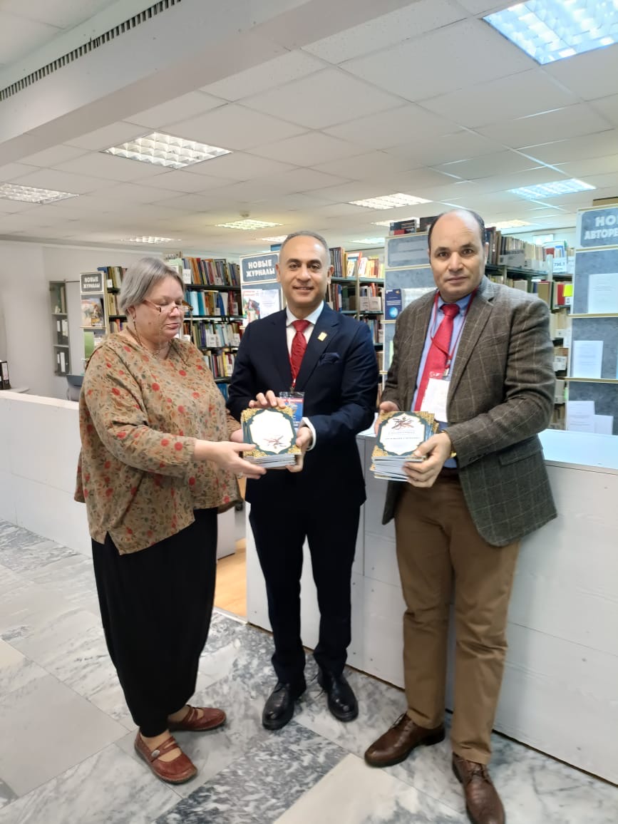 وفد “رسالة السلام ” يهدي جامعة موسكو الاتحادية إصدارات المفكر العربي على الشرفاء | صور