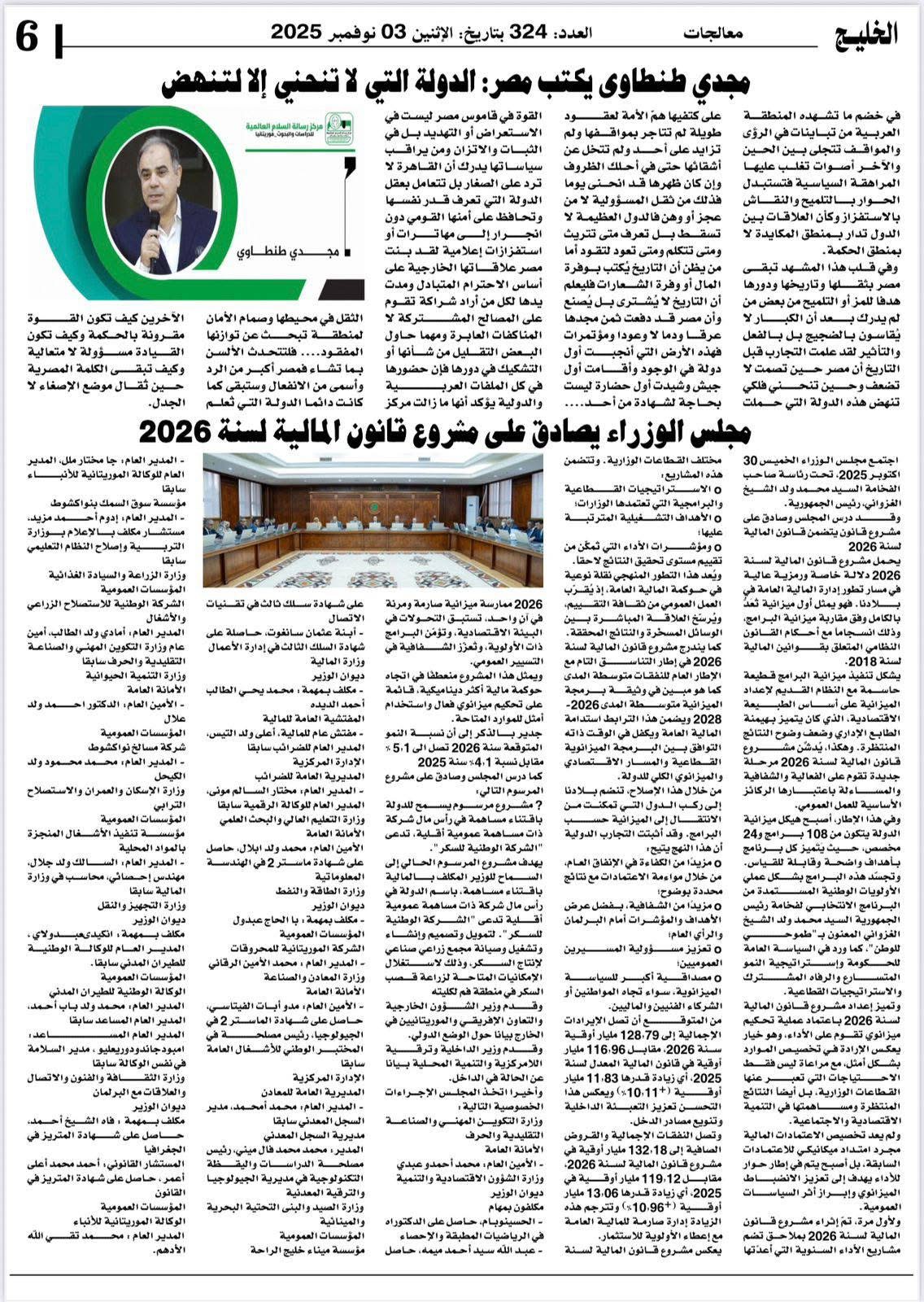 صدر العدد الجديد من جريدة «الخليج»، متضمناً باقة من المقالات والتحليلات والتقارير المتنوعة التي تجمع بين الفكر والدين والسياسة والثقافة، في مشهد صحفي يعكس وعي المرحلة الراهنة وتحدياتها في العالم العربي .