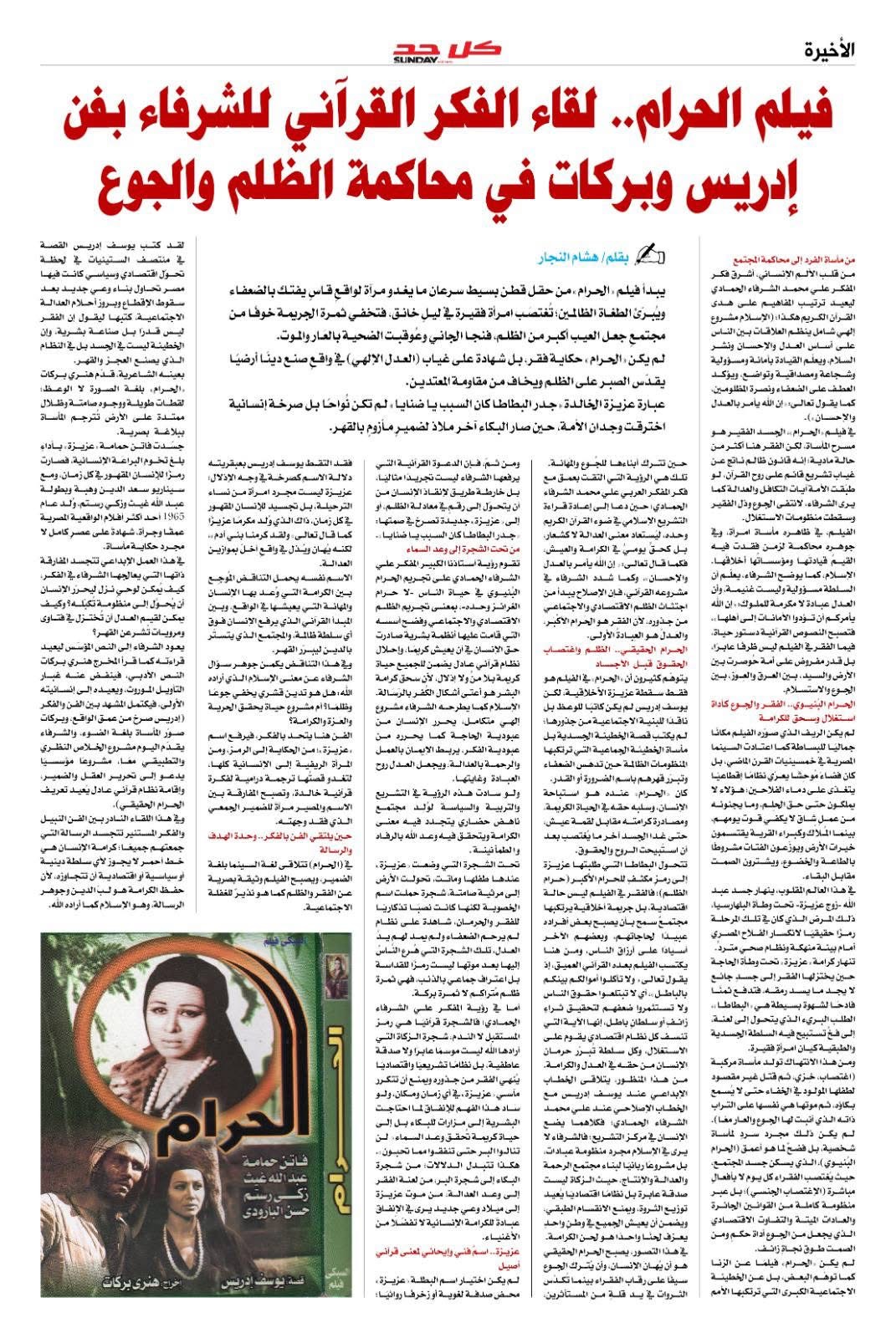 كما شمل العدد مقالات لكل من : " د. عمرو الشريف ، أحمد سمير ، إسلام النواوي " ، وفي الصفحة الأخيرة، تناول الكاتب الصحفي هشام النجار المشهد الثقافي والفني في مقاله : " فيلم الحرام .. لقاء الفكر القرآني للشرفاء بفن إدريس وبركات في محاكمة الظلم والجوع " ، موضحًا كيف يمكن للفن أن يكون وسيلة لطرح القضايا الفكرية والاجتماعية بشكل نقدي وهادف .