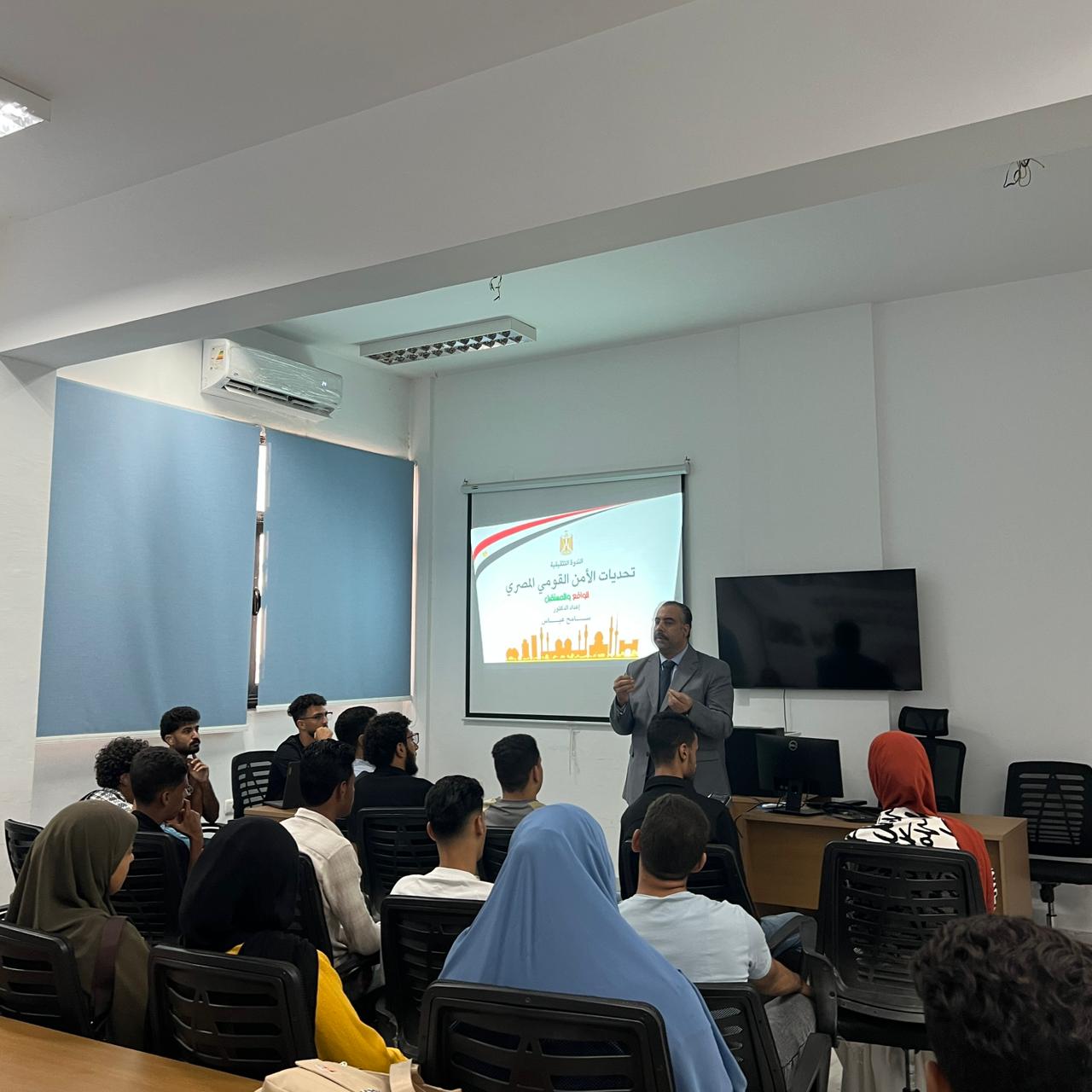 وخلال الندوة، تم تناول عدة محاور رئيسية حول تحديات الأمن القومي المصري، شملت مفهوم هذه التحديات وأنواعها وسبل مواجهتها، إضافة إلى استعراض المحاور الاستراتيجية المصرية في مواجهة التهديدات الإقليمية، بما في ذلك المحاور الشرقي والغربي والشمالي والجنوبي، مع تسليط الضوء على جهود الدولة في حماية حدودها وتأمين مصالحها الاستراتيجية.