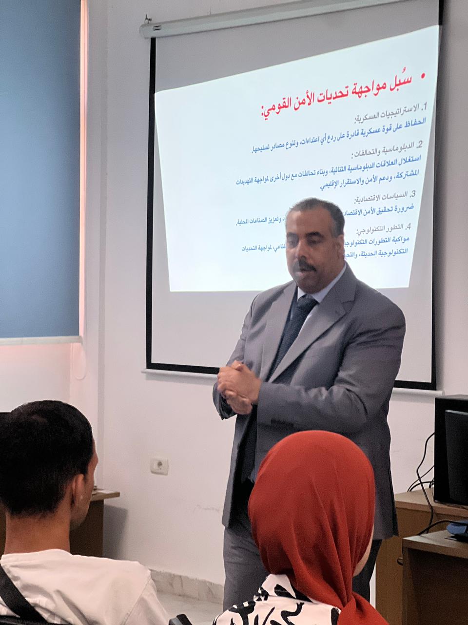 كما عرض الدكتور سامح عباس بالخرائط والصور التوضيحية خريطة التهديدات الإقليمية والتحولات الجيوسياسية في المنطقة، موضحًا الدور الحيوي الذي تلعبه القوات المسلحة المصرية في حماية الأمن القومي وصون مقدرات الدولة .