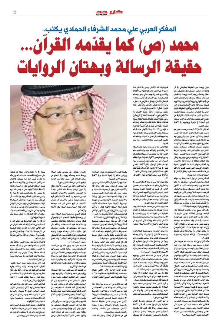 .. و تصدر العدد مقال المفكر العربي الكبير علي الشرفاء الحمادي بعنوان : " محمد صلى الله عليه وسلم كما يقدمه القرآن .. حقيقة الرسالة وبهتان الروايات " ، وهو المقال الذي يُعد الركيزة الفكرية للملف ، إذ يطرح الشرفاء قراءة مختلفة لشخصية النبي سيدنا محمد صلى الله عليه وسلم، مستند إلى النص القرآني وحده ومفنداً ما جاء في " بهتان الروايات " التي التصقت بالسيرة النبوية عبر العصور .
