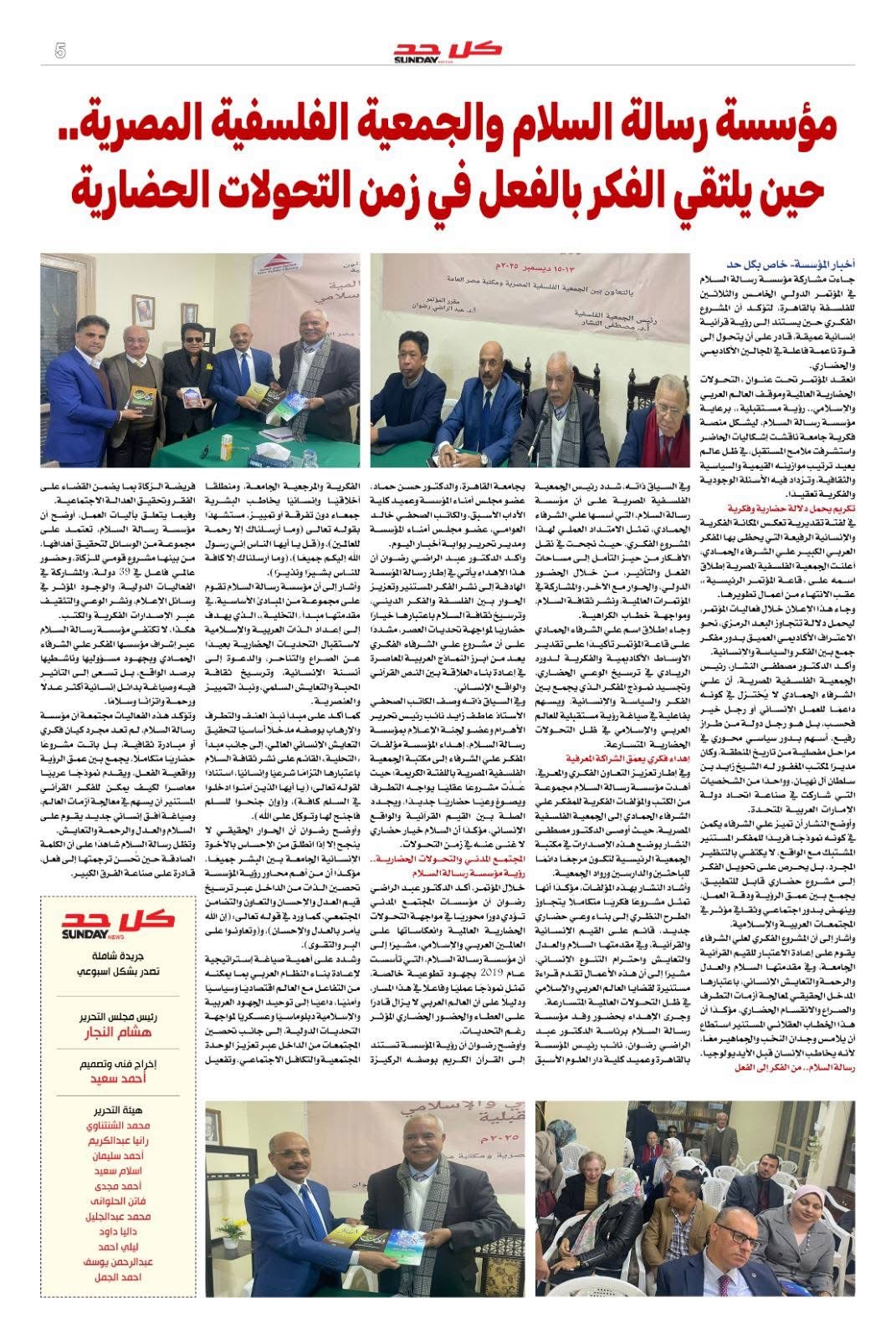وشمل العدد تغطية خاصة لمشاركة مؤسسة رسالة السلام العالمية في المؤتمر الدولي الخامس والثلاثين للفلسفة الذي عقد في القاهرة في حضور نخبة من المفكرين والأكاديميين من مختلف دول العالم .