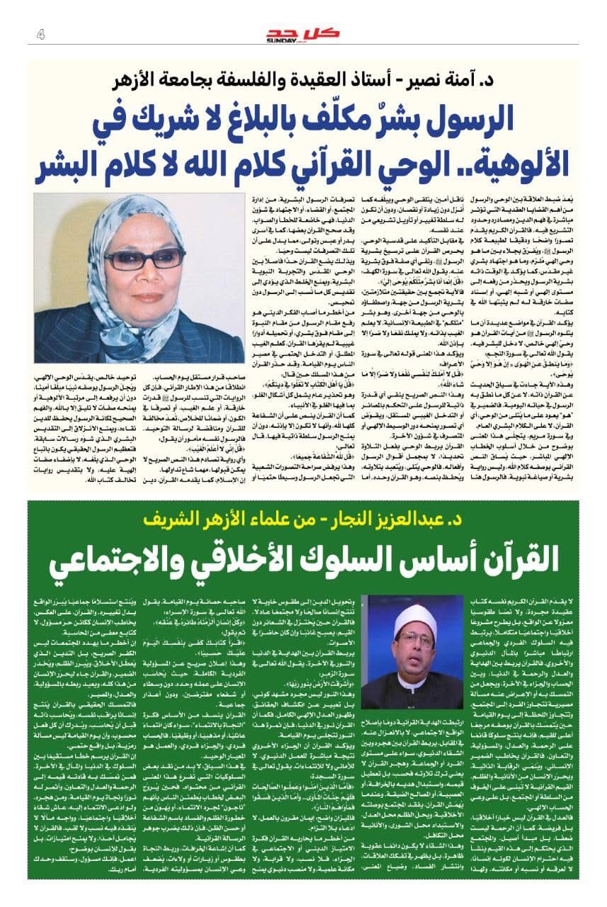 ويشارك في ملف العدد عدد من الكتاب والمفكرين بمقالات نوعية من بينهم : عبد الرحمن نوح والدكتورة آمنة نصير وأحمد سمير الأزهري والدكتور عبد العزيز النجار حيث تتقاطع أطروحاتهم حول ضرورة تجديد الخطاب الديني واستعادة المعنى الإنساني للإيمان .