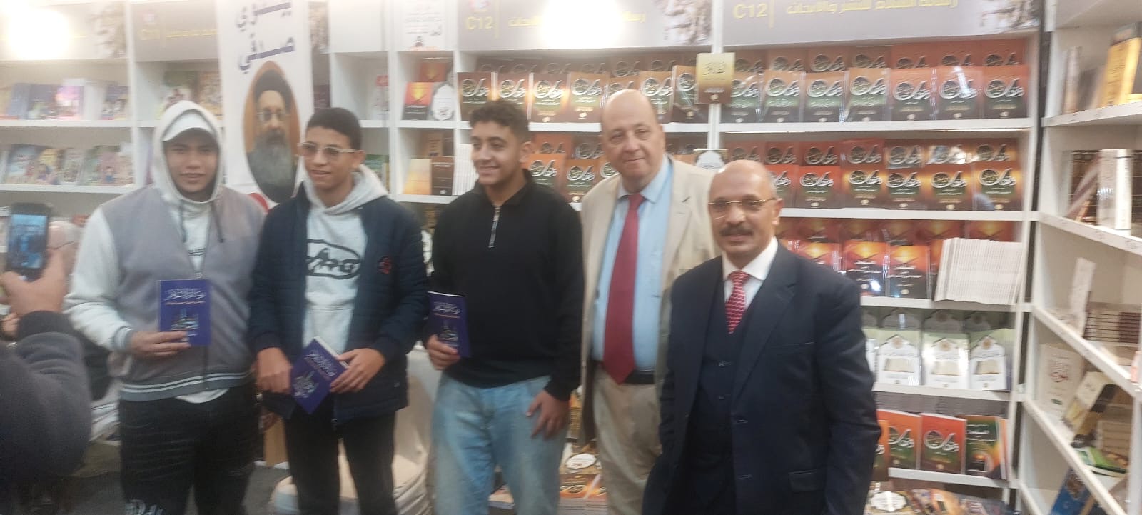 وفد من طلاب مدرسة السعيدية الثانوية يزور جناح مؤسسة رسالة السلام بمعرض القاهرة الدولي للكتاب | صور