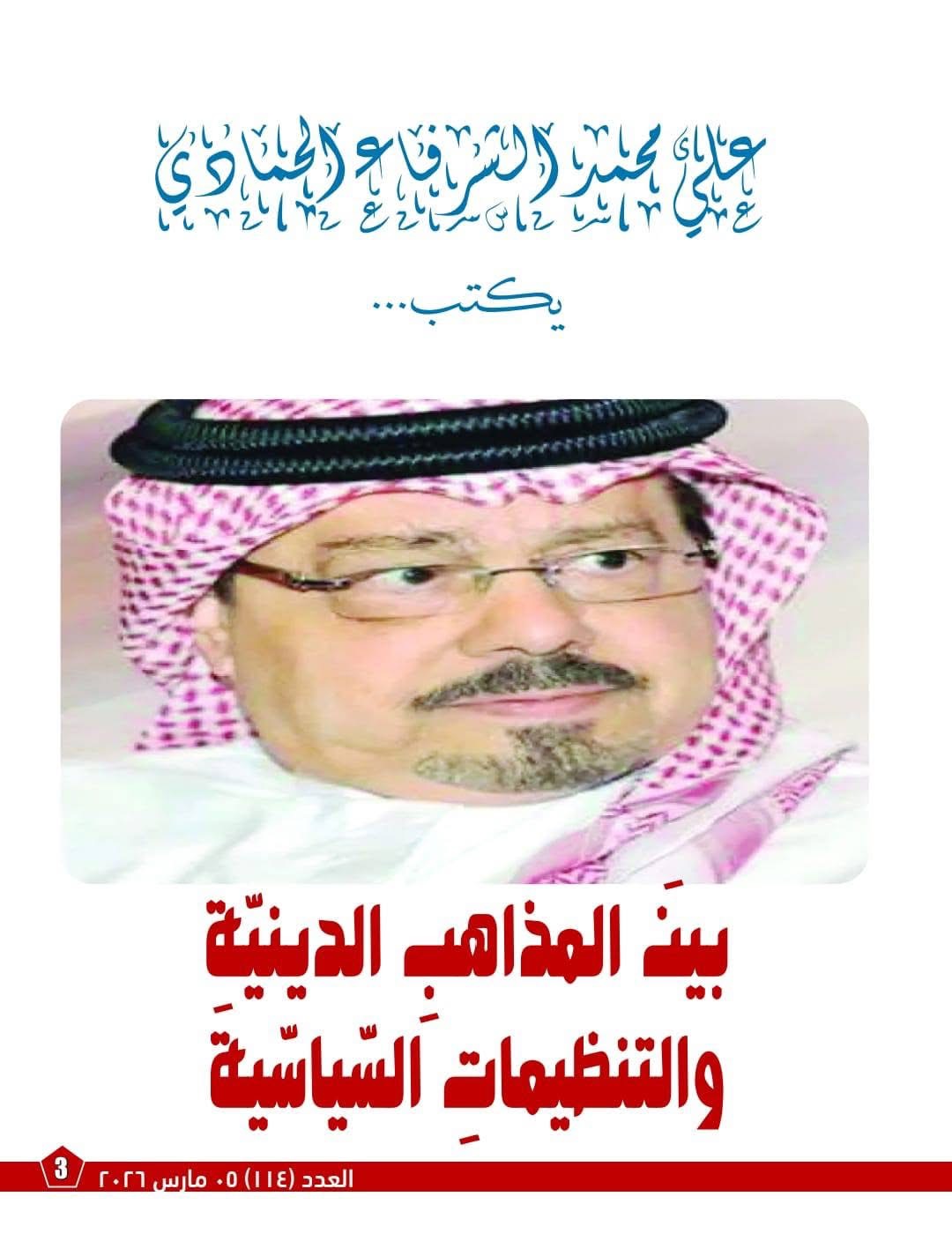 صدر أمس العدد الجديد من مجلة «كل خميس» التي تصدر عن مؤسسة رسالة السلام، متضمناً ملف فكري وتحليلي موسع يتناول قضايا الانقسام الفكري والديني في العالم الإسلامي، ويتصدره مقال محوري للمفكر العربي الأستاذ علي الشرفاء الحمادي بعنوان " بين المذاهب الدينية والتنظيمات السياسية ".