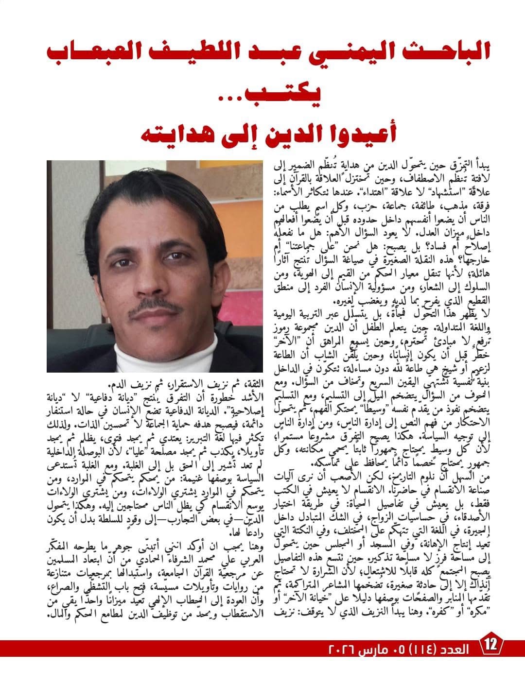 ويتضمن العدد كذلك ملفاً تحليلياً يرصد كيف يتسلل الانقسام إلى المجتمع عبر اللغة اليومية وتفاصيل العلاقات، حين تتحول ثنائية “نحن/هم” إلى حساسية في المصافحة والزيارة والزواج والعمل، ثم إلى قطيعة عامة تضعف الثقة وتفتح الباب أمام أي شرارة صغيرة لتتحول إلى فتنة واسعة. ويؤكد التقرير أن الخلاف لا يتحول إلى عداوة إلا عندما تتعدد الموازين بتعدد الجماعات، وعندها يغيب السقف الأخلاقي الجامع، فتُستباح القيم باسم “نصرة الدين” أو “مصلحة الجماعة”.