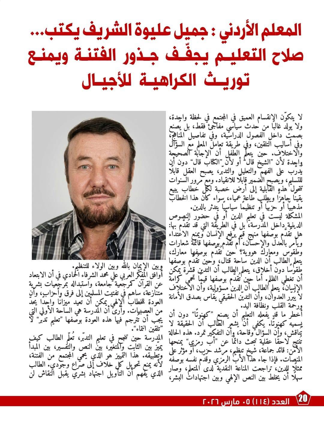 ويختتم العدد بمقال تربوي يعيد جذور الفتنة إلى المدرسة والمنهج قبل المنبر والشارع، موضحاً أن الانقسام العميق يُصنع بصمت داخل الفصول حين يُعاقب السؤال ويُكافأ التسليم، وحين تُقدَّم النصوص بوصفها طقوساً بلا أخلاق أو معارك هووية بلا تدبر. ويدعو المقال إلى تعليم التدبر وأخلاق الاختلاف، وتدريب المعلمين على إدارة الحوار، وإدماج التربية الإعلامية الرقمية حتى لا يصبح الهاتف معلمًا للغضب بدلاً من أن يكون أداة للفهم.