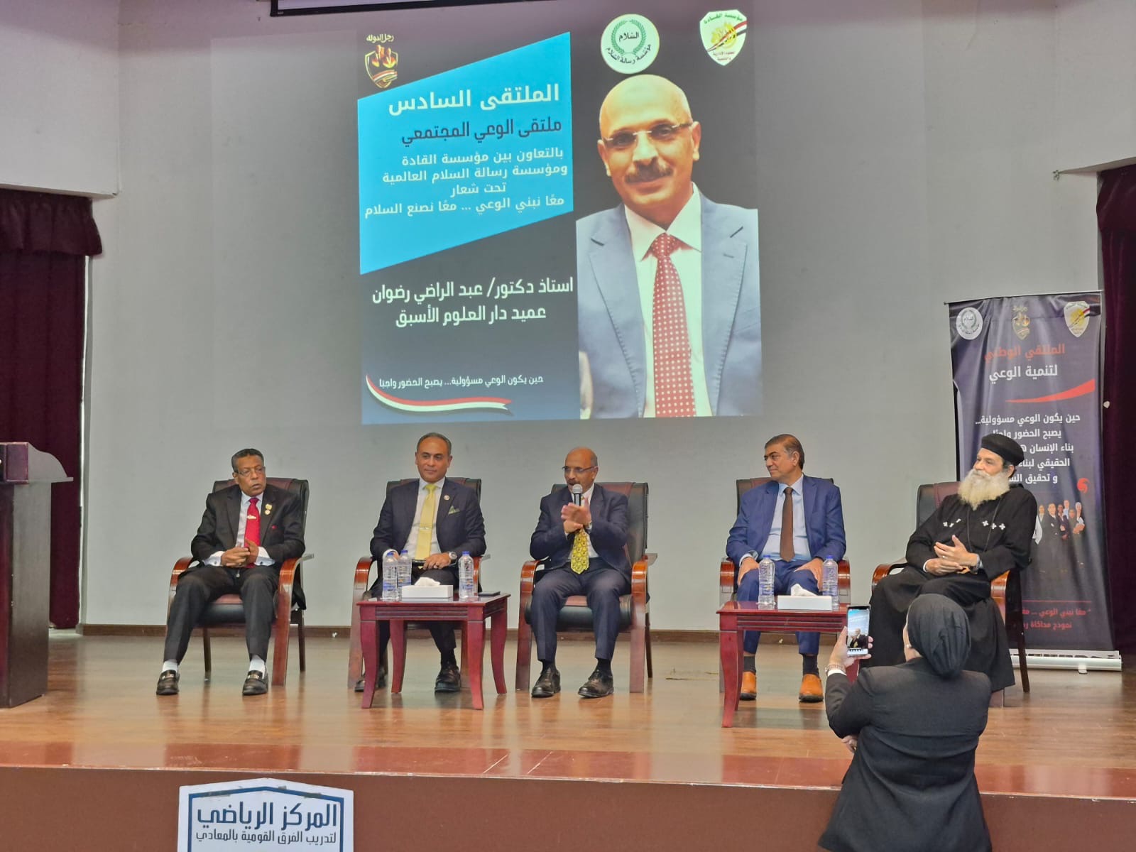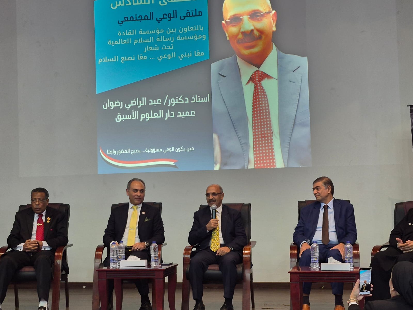 أدار الدكتور عبد الراضي رضوان، عميد كلية دار العلوم الأسبق، ونائب رئيس مؤسسة رسالة السلام الجلسة الثانية من الملتقى السادس للوعي المجتمعي، الذي تنظمه مؤسسة رسالة السلام بالتعاون مع مؤسسة القادة للعلوم الإدارية والتنمية، بحضور نخبة من القيادات الفكرية والسياسية والإعلامية. وقد ركزت الجلسة على تعزيز مشروع الوعي التنويري والمبادئ الفكرية التي ينادي بها المفكر العربي الأستاذ علي الشرفاء الحمادي، والتي تقوم على السلام والوحدة والتكامل العربي، مستندة إلى منهجية قرآنية متوازنة.