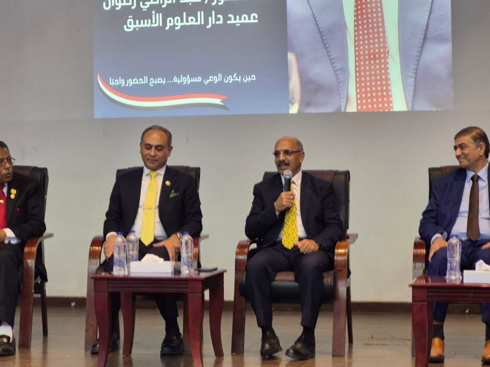 وفي كلمته، أكد الدكتور عبد الراضي رضوان أن الصمت في حرم الجمال جمال، مشددًا على أهمية الوعي كعنصر جوهري في حماية المجتمع وإرساء السلام. وأضاف: كن درعميا فأنت الفكر والنظر، كن كما أنت مصريًا بنزعته فالوعي مشروع قديم في دار العلوم، ونحن نحلق به عبر الجامعات المصرية، حيث نقود مسيرة الوعي التنويري .