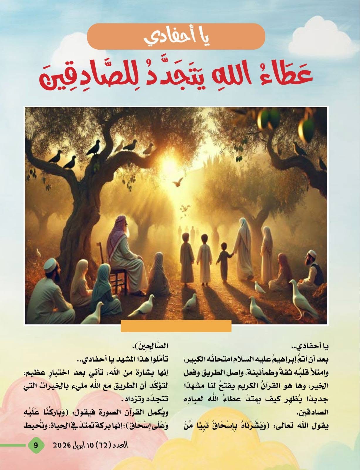 صدر اليوم الجمعة 10 أبريل 2026 العدد 72 من مجلة أطفالنا المتخصصة التي تصدر عن مؤسسة رسالة السلام العالمية