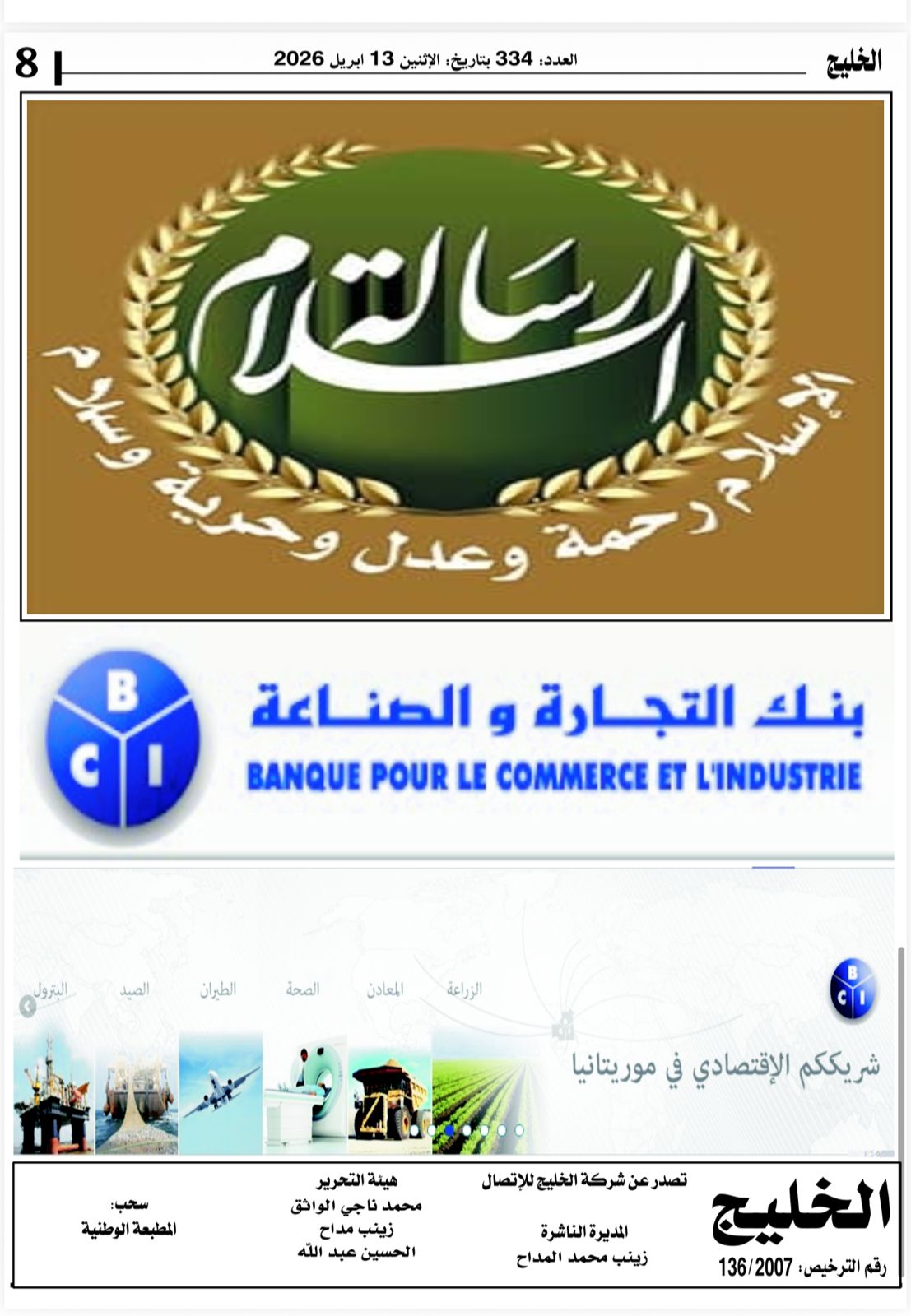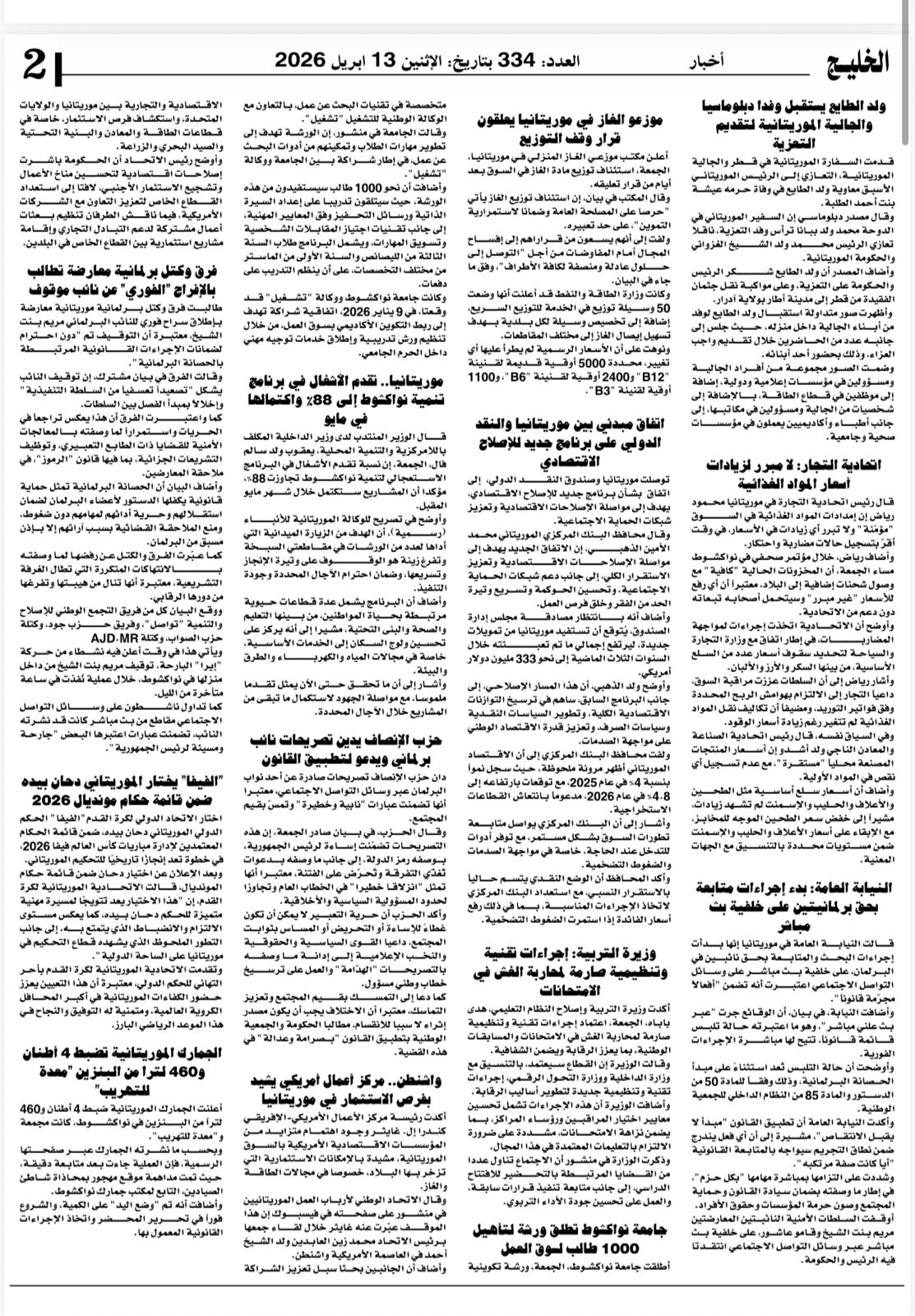 من موريتانيا، يحمل هذا العدد رسائل عميقة ورؤى جريئة تلامس قضايا الأمة، وتفتح نوافذ جديدة للحوار والتنوير، ليبقى القلم الصادق منارة تهدي الطريق نحو مستقبل أكثر وعياً .