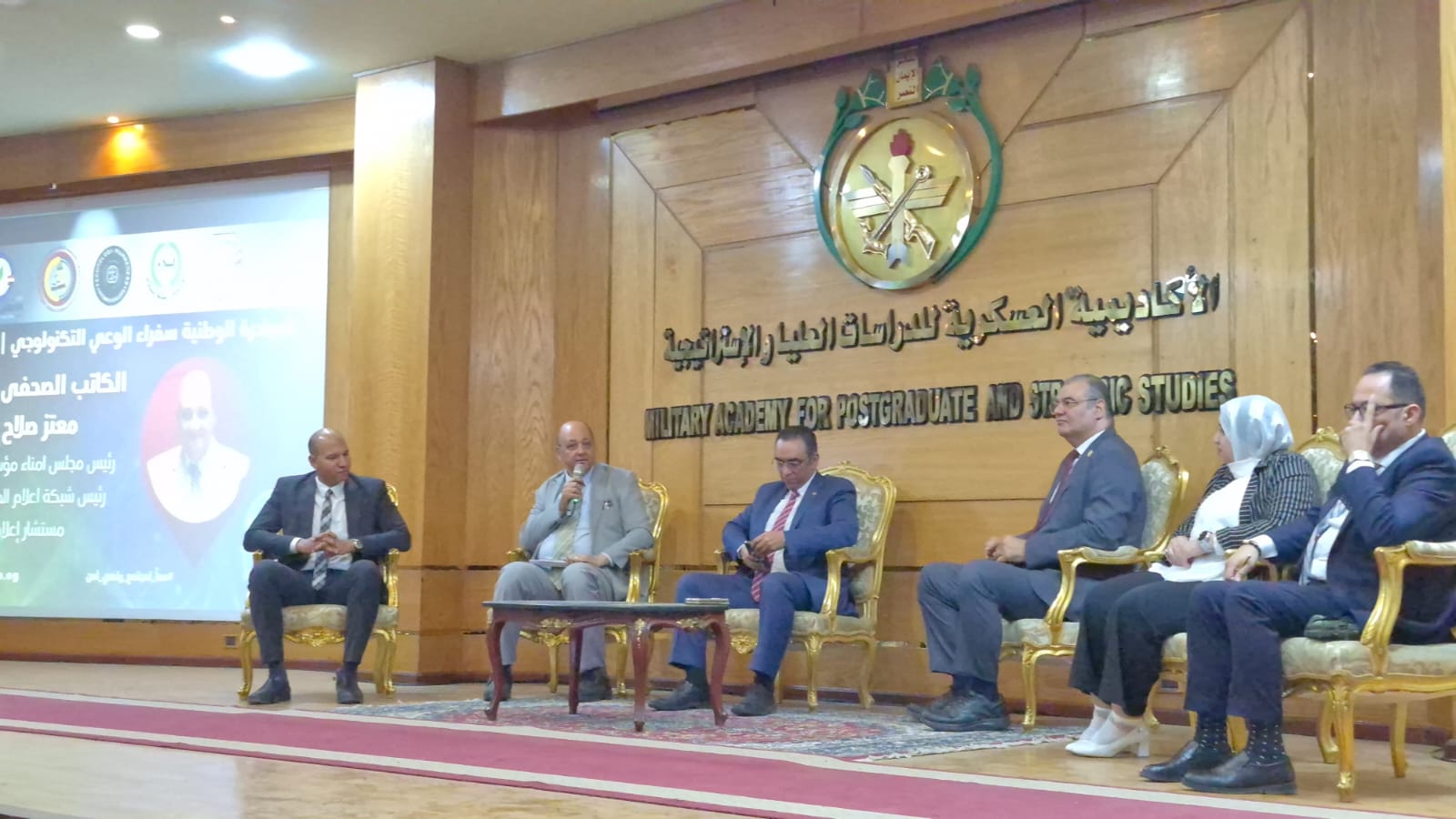 جاء ذلك خلال انعقاد ندوة المبادرة الوطنية “سفراء الوعي التكنولوجي – درع مصر الرقمي”، بالأكاديمية العسكرية للدراسات العليا والإستراتيجية