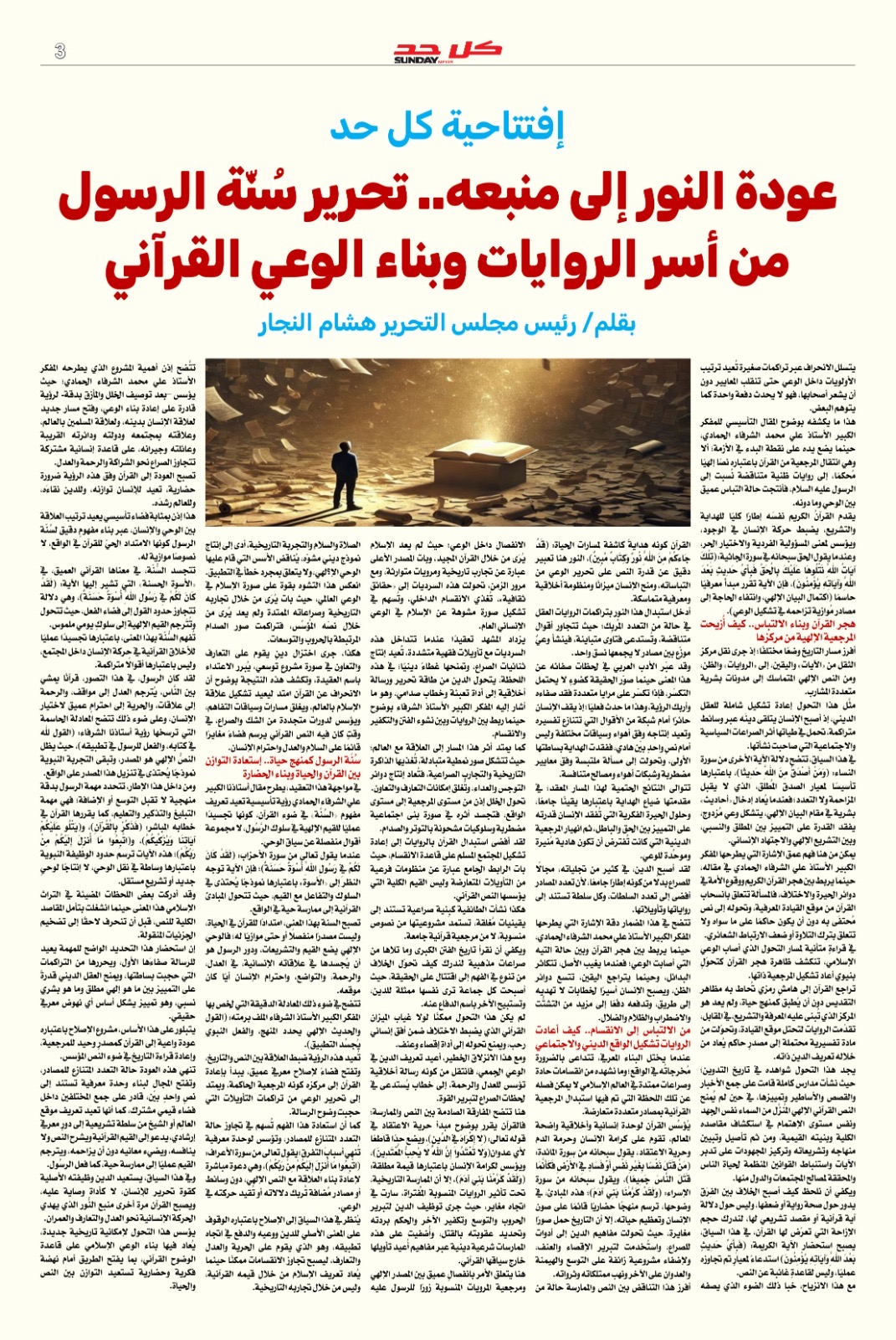 يطل العدد الجديد من مجلة “كل حد” ليشعل واحدة من أكثر المعارك الفكرية سخونة: معركة المنهج والنجاة ، من قلب هذا الإصدار، يتصدر السؤال الأخطر المشهد: هل يكمن طريق الخلاص في العودة إلى القرآن وحده، أم أن الروايات المدسوسة غيبت جوهر الرسالة وأدخلت الأمة في دوامة الانقسام .