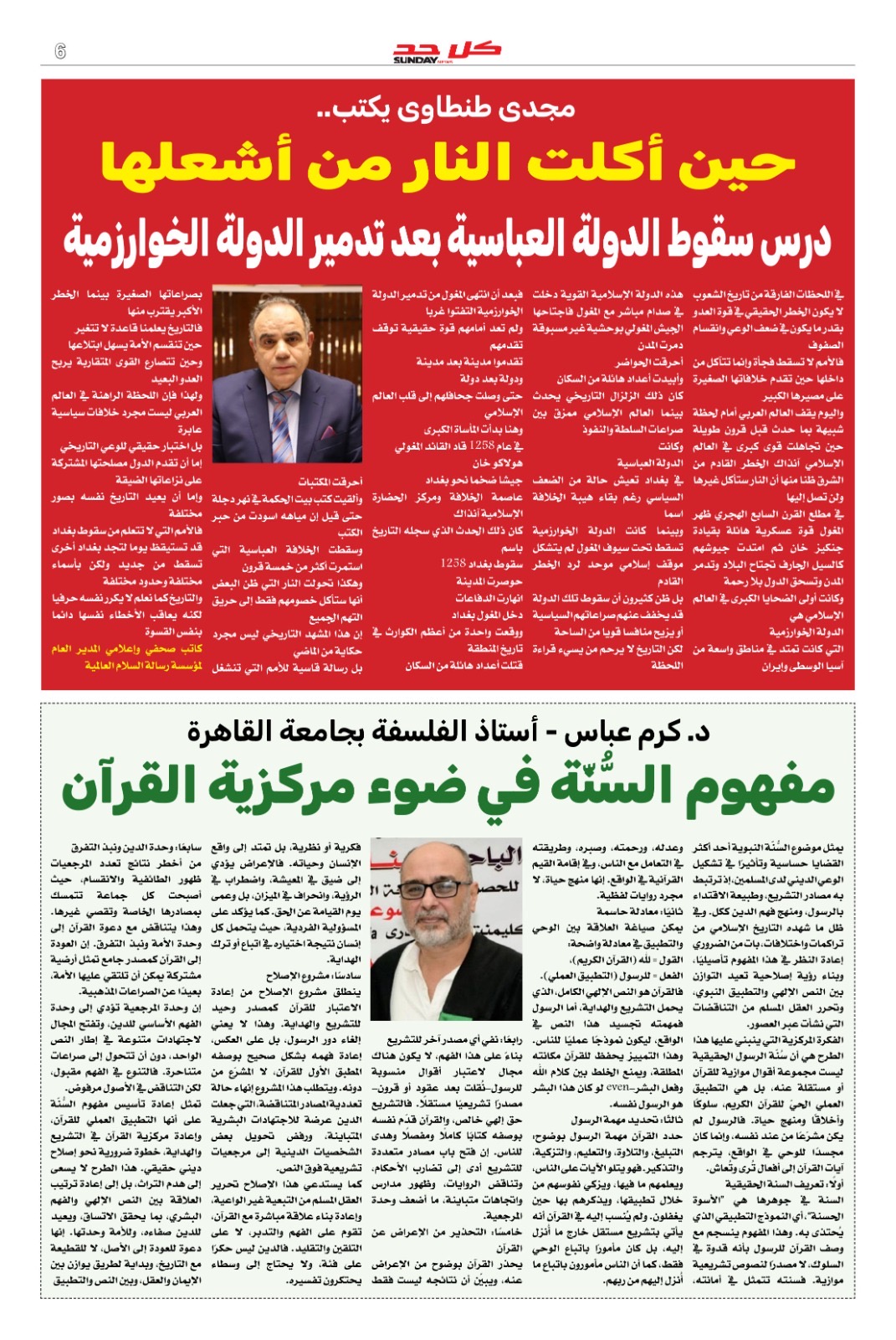 كما تضمن العدد مقال نوعي للمدير العام لمؤسسة رسالة السلام العالمية الكاتب الصحفي والإعلامي الأستاذ مجدي طنطاوي حول إنقسام الأمة الذي كتب مرثية العباسيين .