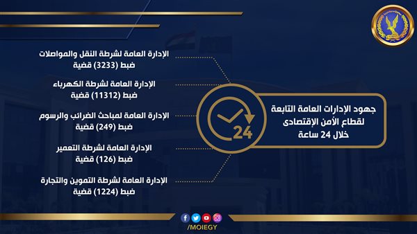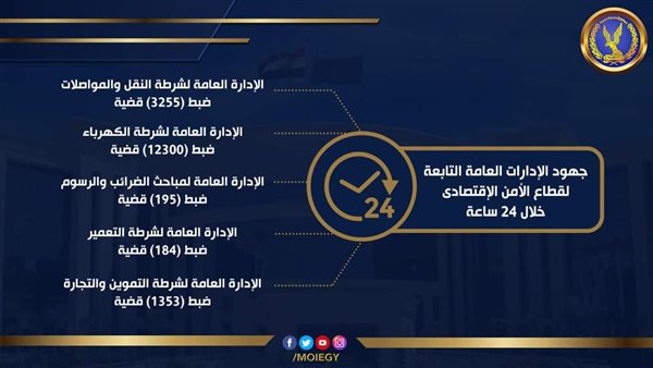 واصلت أجهزة وزارة الداخلية على مستوى الجمهورية توجيه الحملات الأمنية بالتنسيق مع قطاع الأمن المركزى أسفرت جهود أجهزة وزارة الداخلية خلال أسبوع عن تحقيق النتائج الإيجابية التالية: فى مجال الأمن العام، إستهداف البؤر الإجرامية شديدة الخطورة بمنطقتى (بحيرة المنزلة بنطاق محافظات دمياط - بورسعيد - الدقهلية )