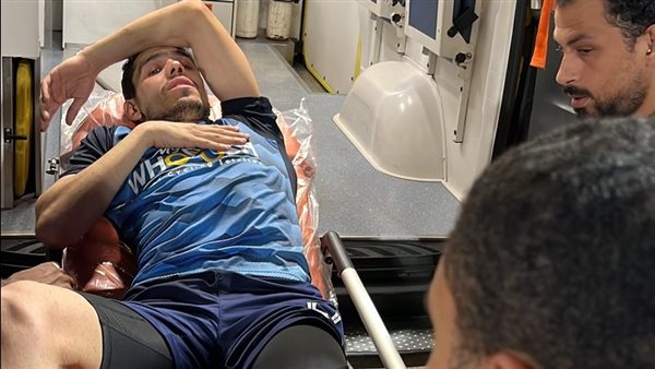 نقل محمد حمدي مدافع نادي بيراميدز إلى المستشفى الجوي بالتجمع الخامس بعد إصابته في مباراة الأهلي بالدوري الممتاز