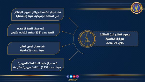 ننشر جهود قطاع أمن المنافذ بوزارة الداخلية خلال 24 ساعة