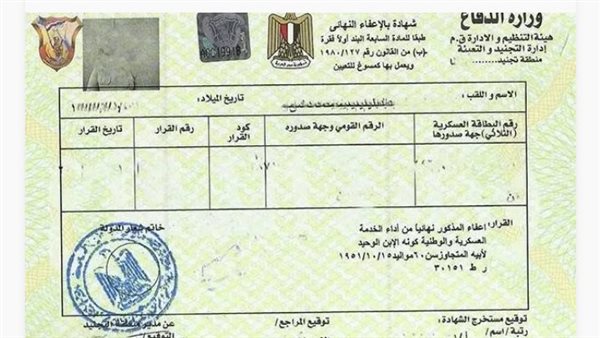 يستعرض لكم هذا التقرير كل ما يخص خطوات استخراج شهادة الجيش النهائية بعد الاحتياط،وأيضًا الأوراق المطلوبة للحصول على شهادة التجنيد بعد الاحتياط