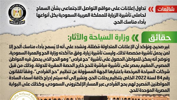 تداولت بعض المواقع الإلكترونية وصفحات التواصل الاجتماعي إعلانات بشأن السماح لحاملي تأشيرة الزيارة للمملكة العربية السعودية بكل أنواعها بأداء مناسك الحج