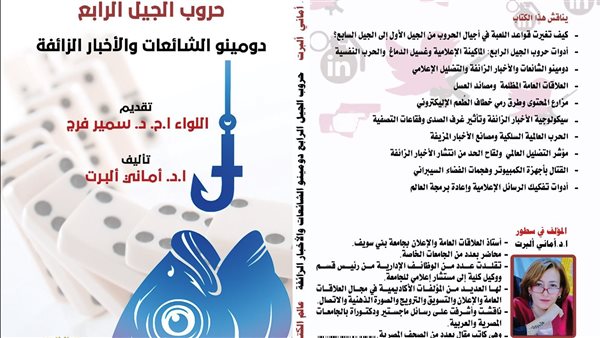 صدر حديثا للدكتورة أماني ألبرت، أستاذ ورئيس قسم العلاقات العامة بكلية الإعلام جامعة بنى سويف، كتاب جديد بعنوان «حروب الجيل الرابع»