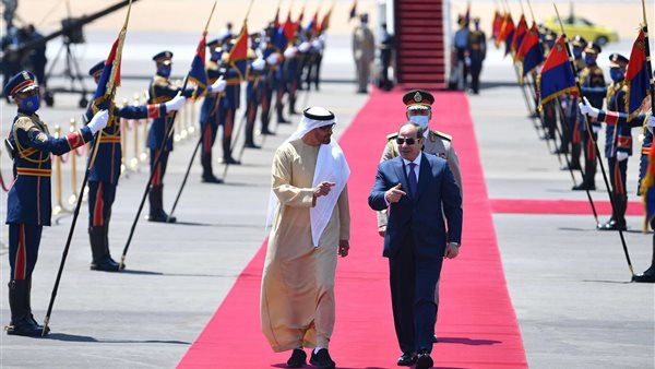 استقبل السيد الرئيس عبد الفتاح السيسي بعد ظهر اليوم بمطار العلمين صاحب السمو الشيخ محمد بن زايد آل نهيان رئيس دولة الامارات العربية المتحدة الشقيقة، الذي يحل ضيفاً عزيزاً على مصر . وصرح المتحدث الرسمي باسم رئاسة الجمهورية ان لقاء الزعيمين تناول تبادل الرؤى ووجهات النظر تجاه القضايا الدولية والامن الاقليمى