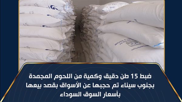 قامت الأجهزة الأمنية بمديرية أمن جنوب سيناء بحملة تموينية بدائرة قسم شرطة أول شرم الشيخ أسفرت عن ضبط (١٥ طن دقيق بدون مستندات تدل على مصدره