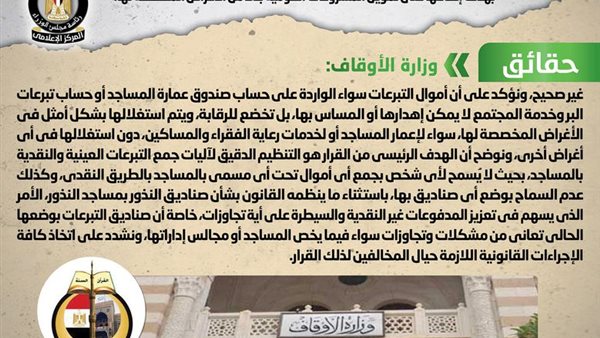 انتشر في بعض المواقع الإلكترونية وصفحات التواصل الاجتماعي أنباء بشأن إصدار وزارة الأوقاف منشوراً يلزم المصلين بدفع فواتير الكهرباء الخاصة بالمساجد تزامناً مع تركيب العدادات مسبقة الدفع بها، وقد قام المركز الإعلامي لمجلس الوزراء بالتواصل مع وزارة الأوقاف، والتي نفت تلك الأنباء، مؤكدةً أنه لا صحة لإصدار