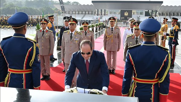 وضع الرئيس عبد الفتاح السيسي أكاليل الزهور على قبر الجندي المجهول والزعيمين أنور السادات وجمال عبد الناصر
