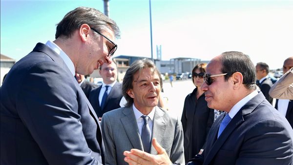 استقبل الرئيس الصربي ألكسندر فوتشيتش الرئيس عبد الفتاح السيسي يمطار العاصمة بلجراد...................