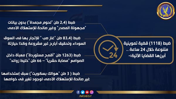 ضبط 1130 قضية تموينية متنوعة خلال 24 ساعة