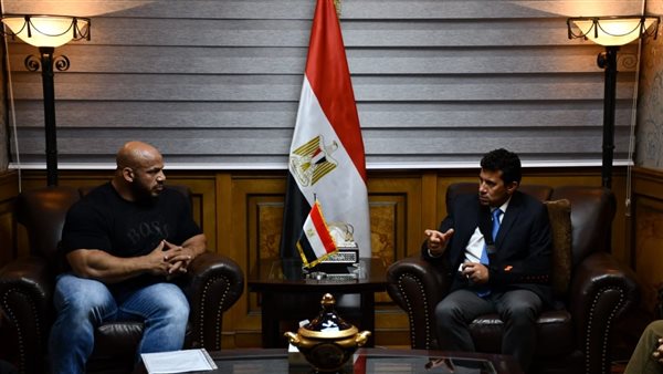 التقي الدكتور أشرف صبحي وزير الشباب والرياضة ،اليوم بمكتبه بديوان الوزارة، اللاعب ممدوح رامي السبيعي الشهير ببيج رامي بطل كمال الاجسام للمحترفين .