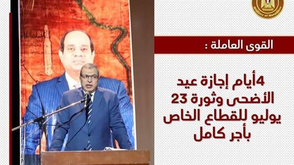 وزير العمل: الخميس المقبل إجازة مدفوعة الأجر للعاملين بالقطاع الخاص بمناسبة عيد تحرير سيناء