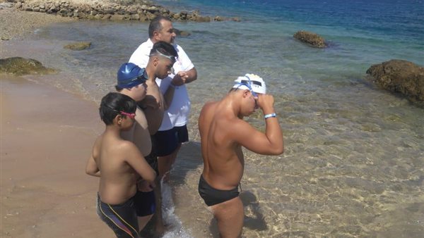 بالصور.. بدء تدريبات سباحين المنتخب العربى لعبور المانش فى الغردقة