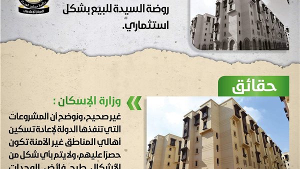 الإسكان تفند شائعة بيع فائض وحدات مشروع روضة السيدة بشكل استثماري