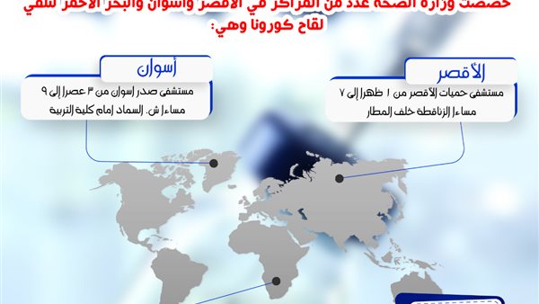 عناوين مراكز تلقى لقاح كورونا في الأقصر وأسوان والبحر الأحمر.. أنفو جراف
