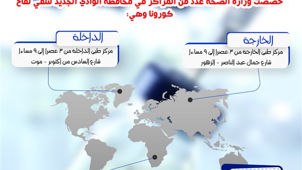 عناوين مراكز تلقى لقاح كورونا في الوادي الجديد ومواعيد العمل.. أنفو جراف
