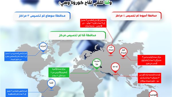 عناوين مراكز تلقى لقاح كورونا في أسيوط وسوهاج وقنا.. أنفو جراف