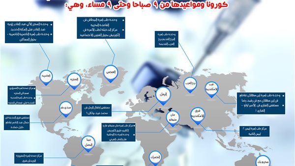 عناوين مراكز تلقى لقاح كورونا في مدن القناة ومواعيد العمل.. انفوجراف
