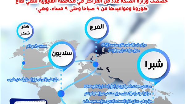 عناوين مراكز تلقى لقاح كورونا في القليوبية ومواعيد العمل.. انفوجراف
