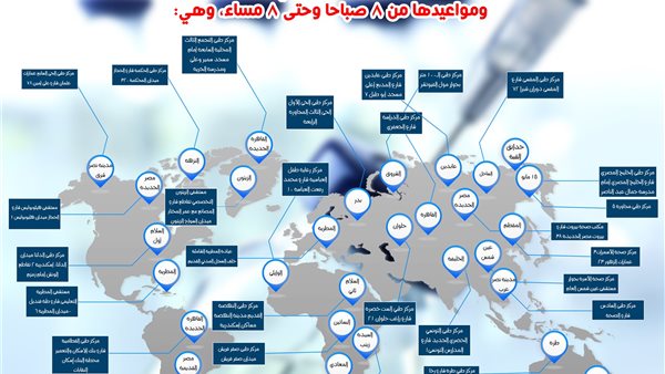 عناوين مراكز تلقى لقاح كورونا في القاهرة ومواعيد العمل.. انفوجراف